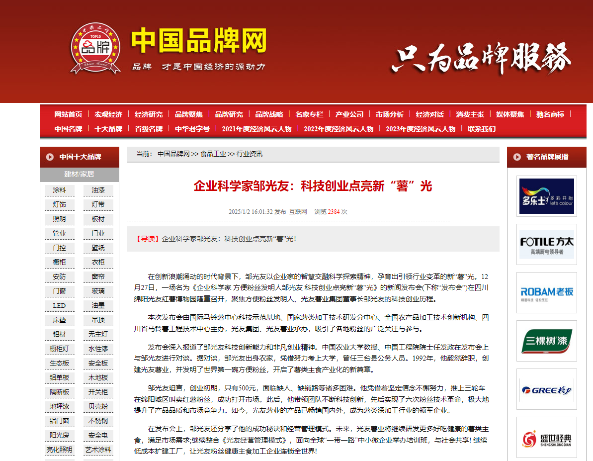 轉(zhuǎn)載中國(guó)品牌網(wǎng)——企業(yè)科學(xué)家鄒光友:科技創(chuàng)業(yè)點(diǎn)亮新“薯”光