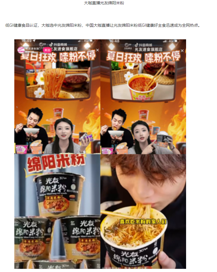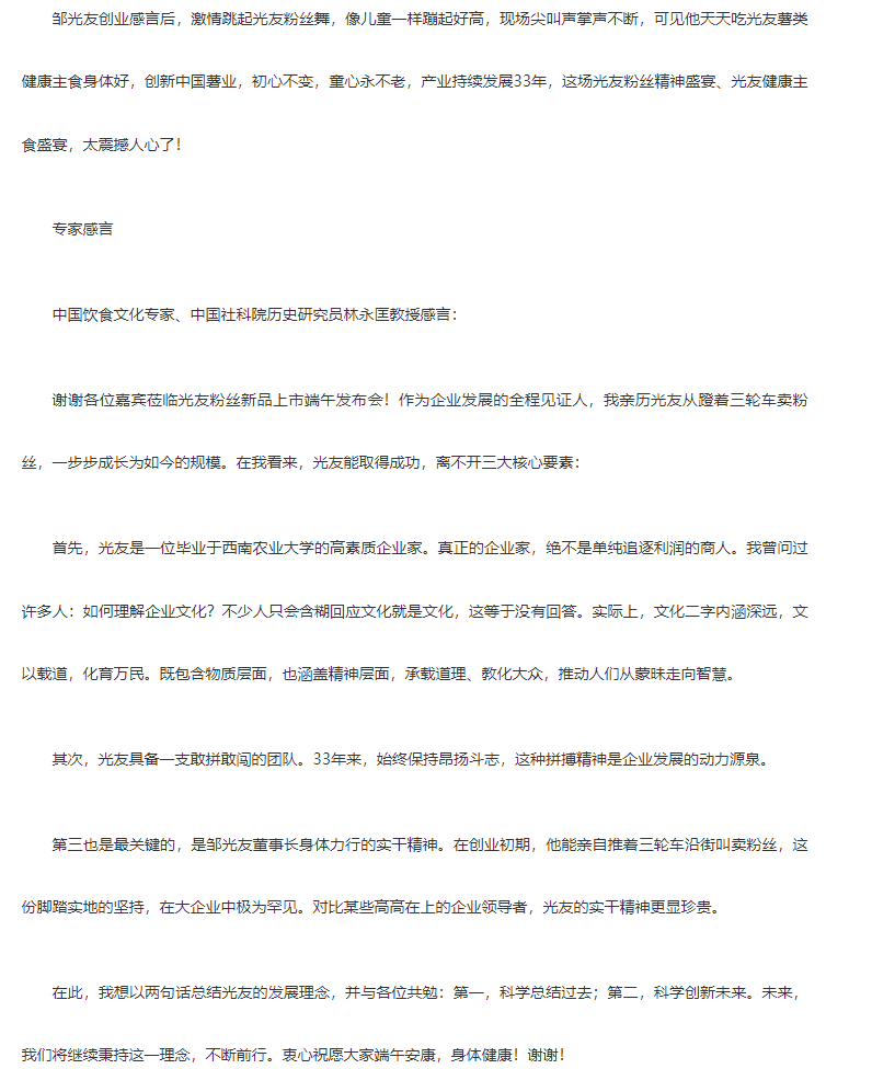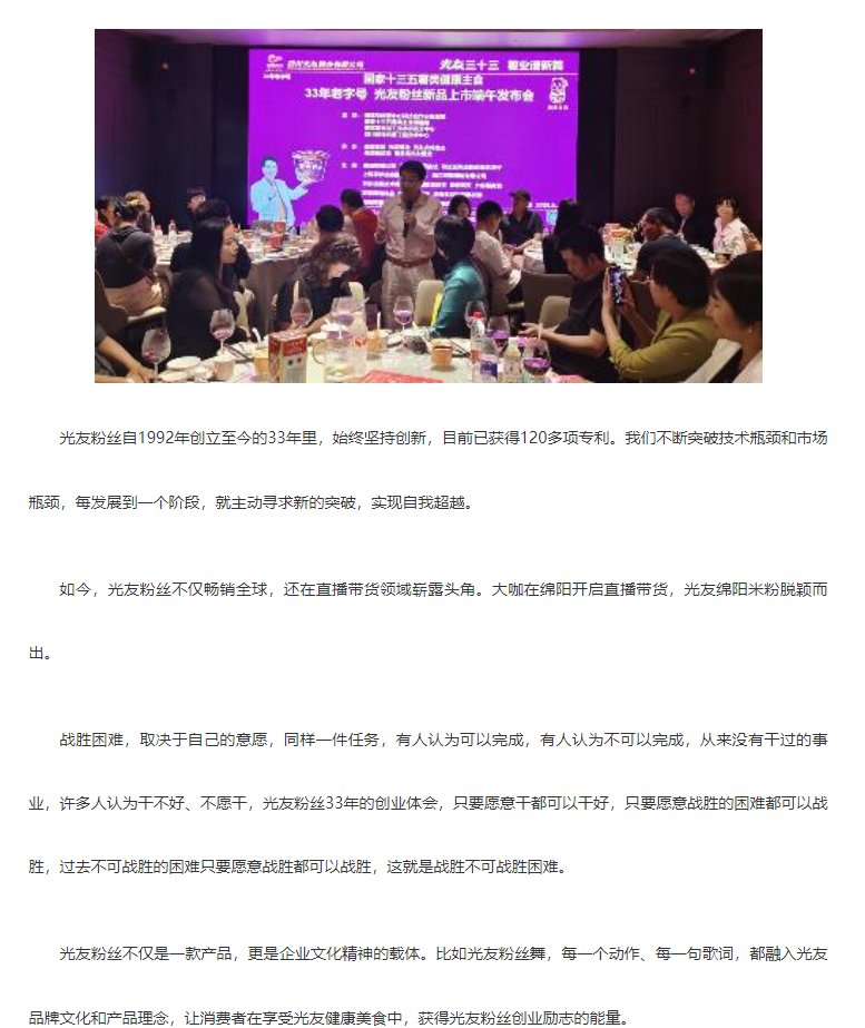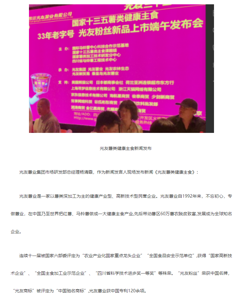 轉(zhuǎn)載中華網(wǎng)——光友酸辣粉 光友綿陽米粉低GI薯類健康主食 北京新聞發(fā)布轟動(dòng)全球