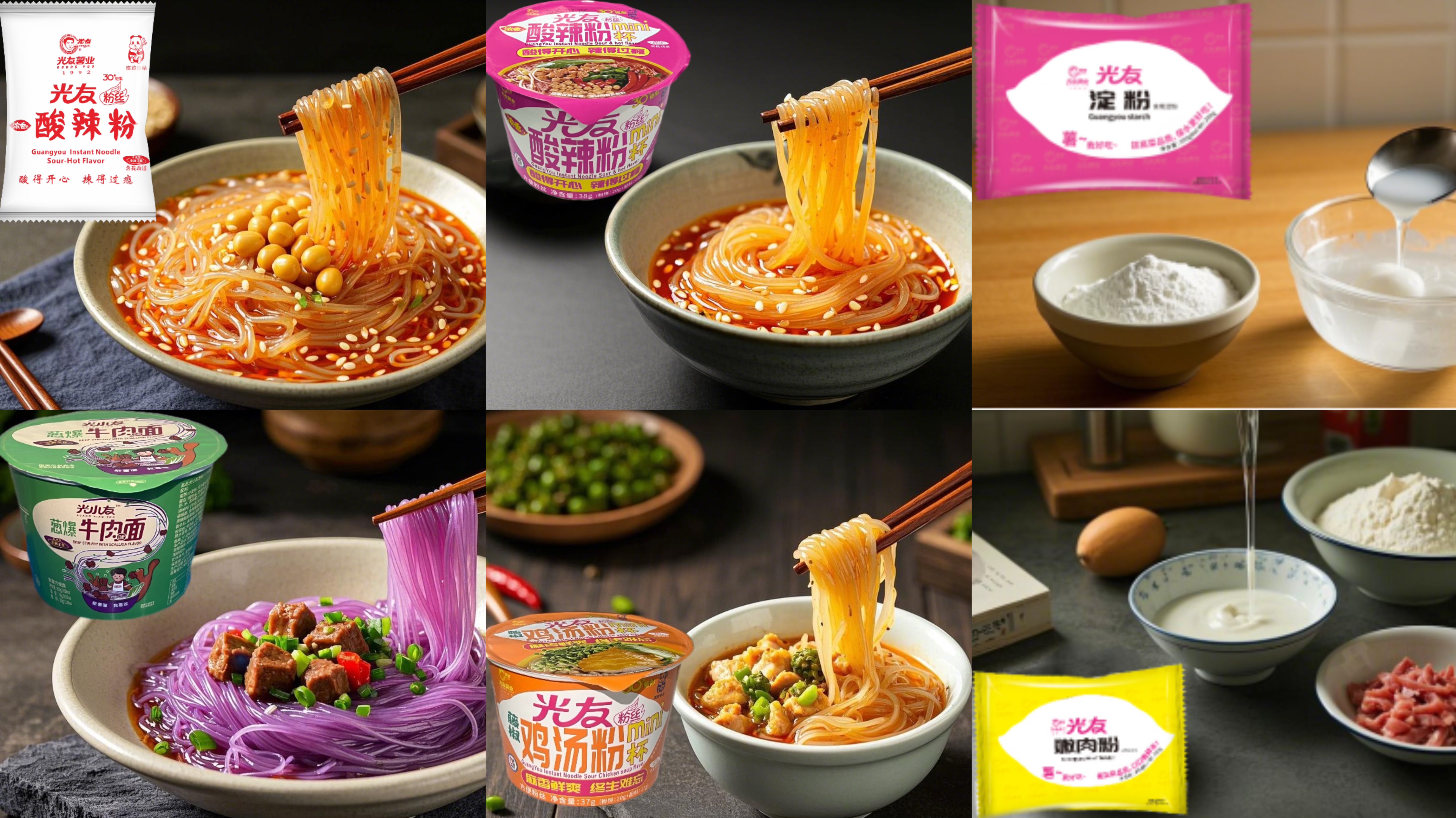 光友酸辣粉絲紅薯粉絲網(wǎng)紅方便粉絲即泡即食非油炸麻辣細(xì)粉絲6杯