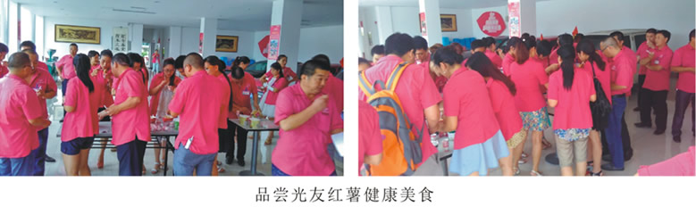 紅薯加工園:您可以了解到紅薯精深加工技術(shù)的神奇,您最喜歡的“光友酸辣粉”“光友全薯粉絲”、“光友紅薯粉皮”等紅薯健康美食便出自這里。一根根紅薯從機(jī)器的一頭進(jìn)去,一碗碗美味鮮香的光友全薯粉絲便從機(jī)器的另一邊出來(lái)……。